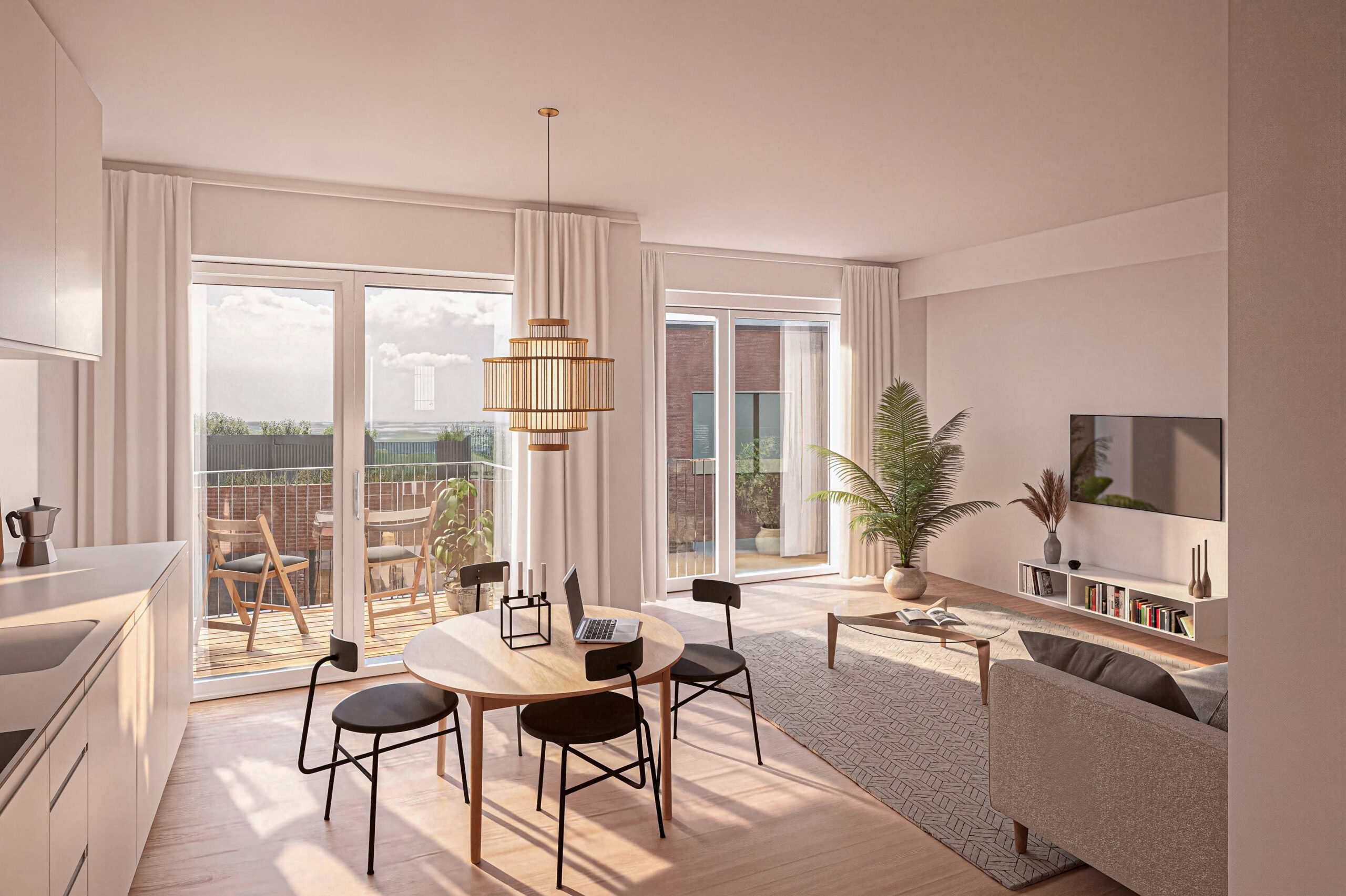 Her bor du omgivet af vand, grønne opholdsarealer og maritime stemninger, der inviterer til både afslapning og aktivitet. Området byder på caféer, restauranter, specialbutikker og havnebad – alt sammen i gåafstand.